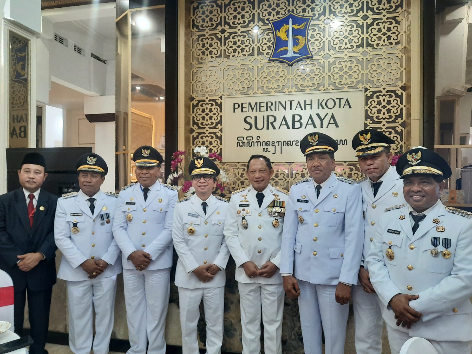 NTT AKTUAL. SURABAYA. Pj. Gubernur NTT, Ayodhia G. L Kalake, SH, MDC mengikuti upacara peringatan Nasional Hari Otonomi Daerah XXVIII Tahun 2024 yang dipusatkan di Balai Kota Surabaya, Kamis (25/04/2024).