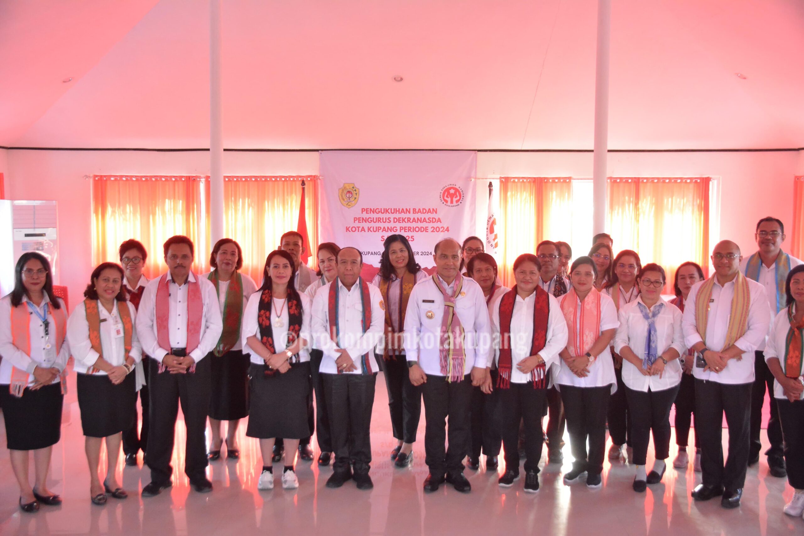 Pengukuhan tersebut diawali dengan pembacaan naskah pengukuhan, yang kemudian diikuti dengan penandatanganan oleh Penjabat Ketua Dekranasda Kota Kupang, Nyonya Angela Lusi-Deran, S.AK. Hadir dalam acara ini Asisten Administrasi Umum Sekda Kota Kupang, Yanuar Dally, SH., M.Si, sejumlah pimpinan dinas terkait, serta pengurus Dekranasda yang baru dilantik.