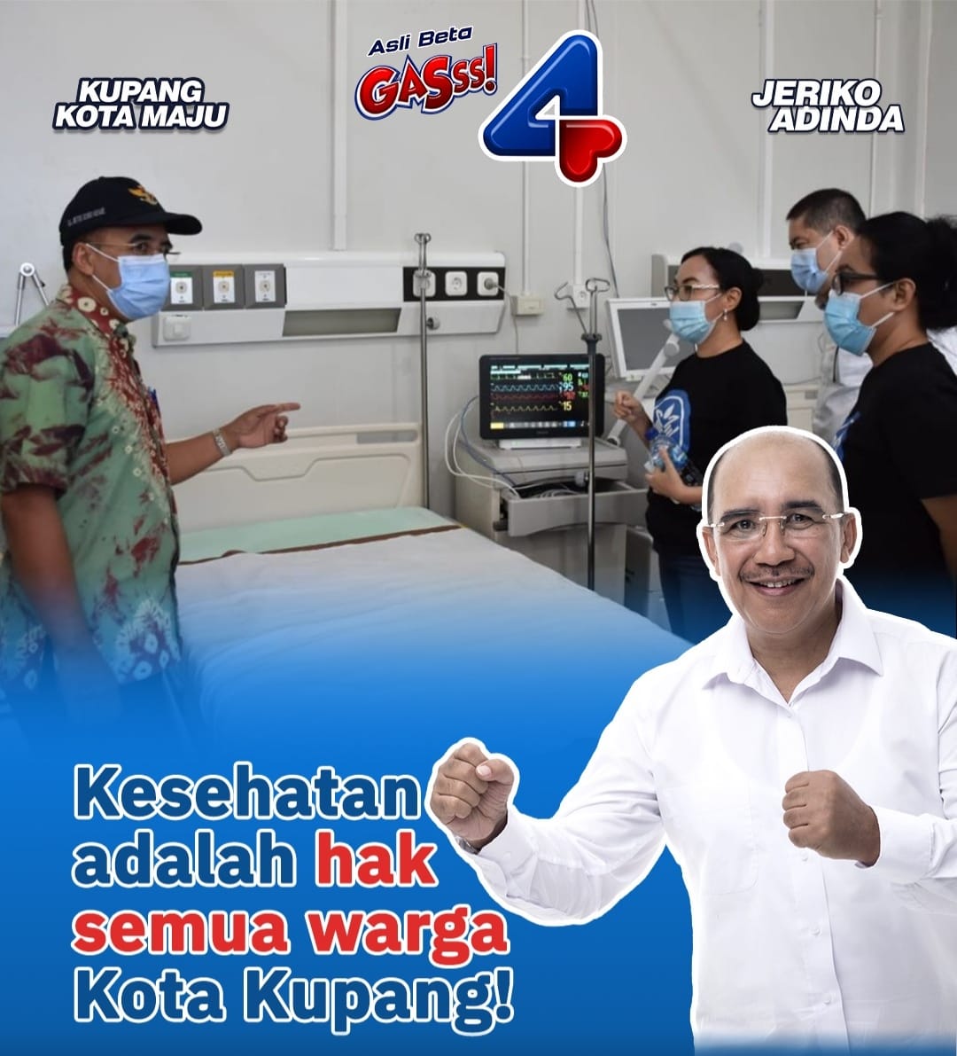 Selain itu, Jeriko juga menjelaskan, bersama Lusia Adinda Lebu Raya berkomitmen untuk terus melengkapi berbagai fasilitas kesehatan, baik di RSUD SK Lerik maupun di puskesmas-puskesmas dan pustu yang ada. Selanjutnya, akan melengkapi kebutuhan dokter spesialis sehingga dapat melayani kebutuhan warga Kota Kupang.
