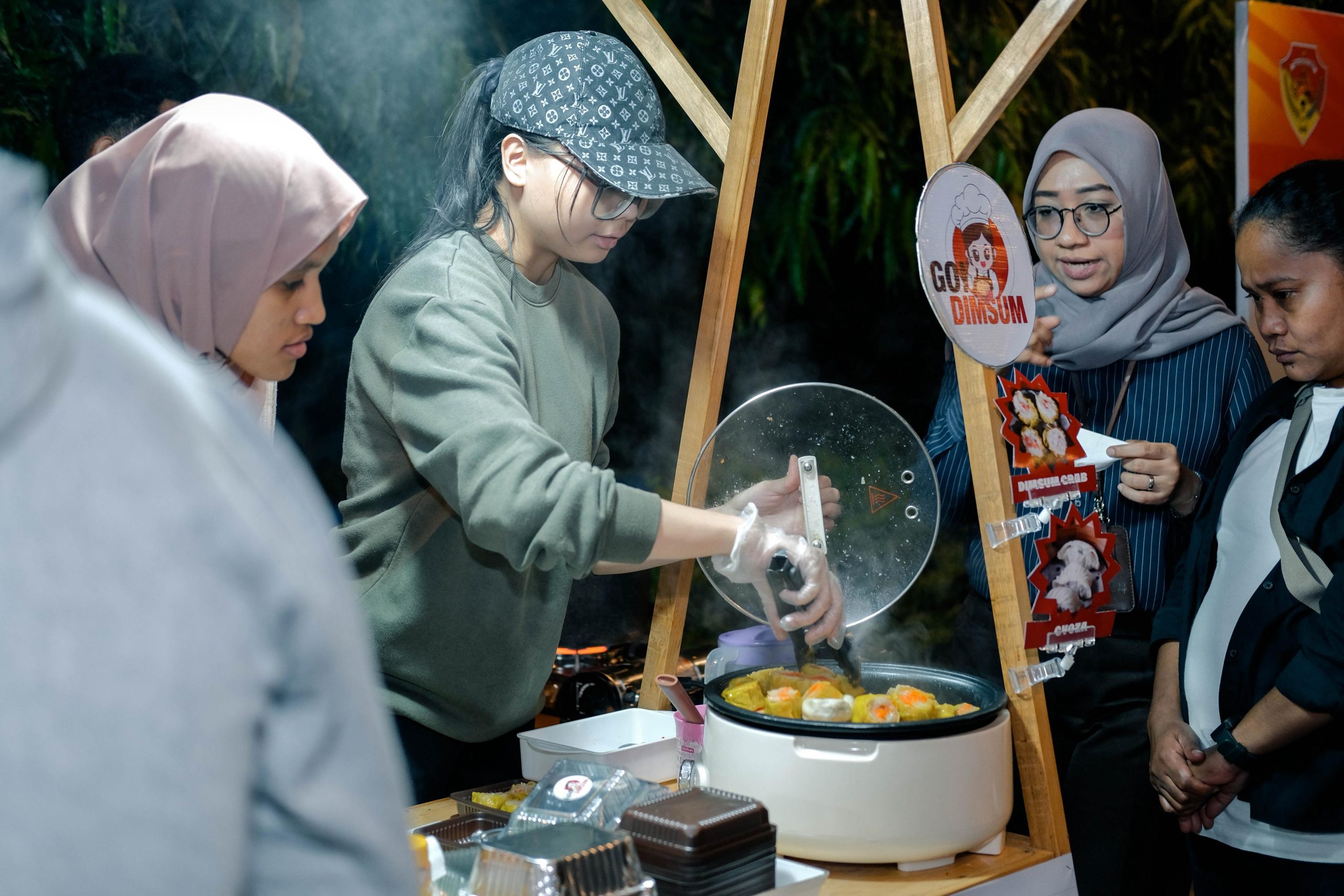 Pemilik usaha Go Dimsum, Clairine Kienata saat menyajikan Dimsum bagi pengunjung Takuju Market