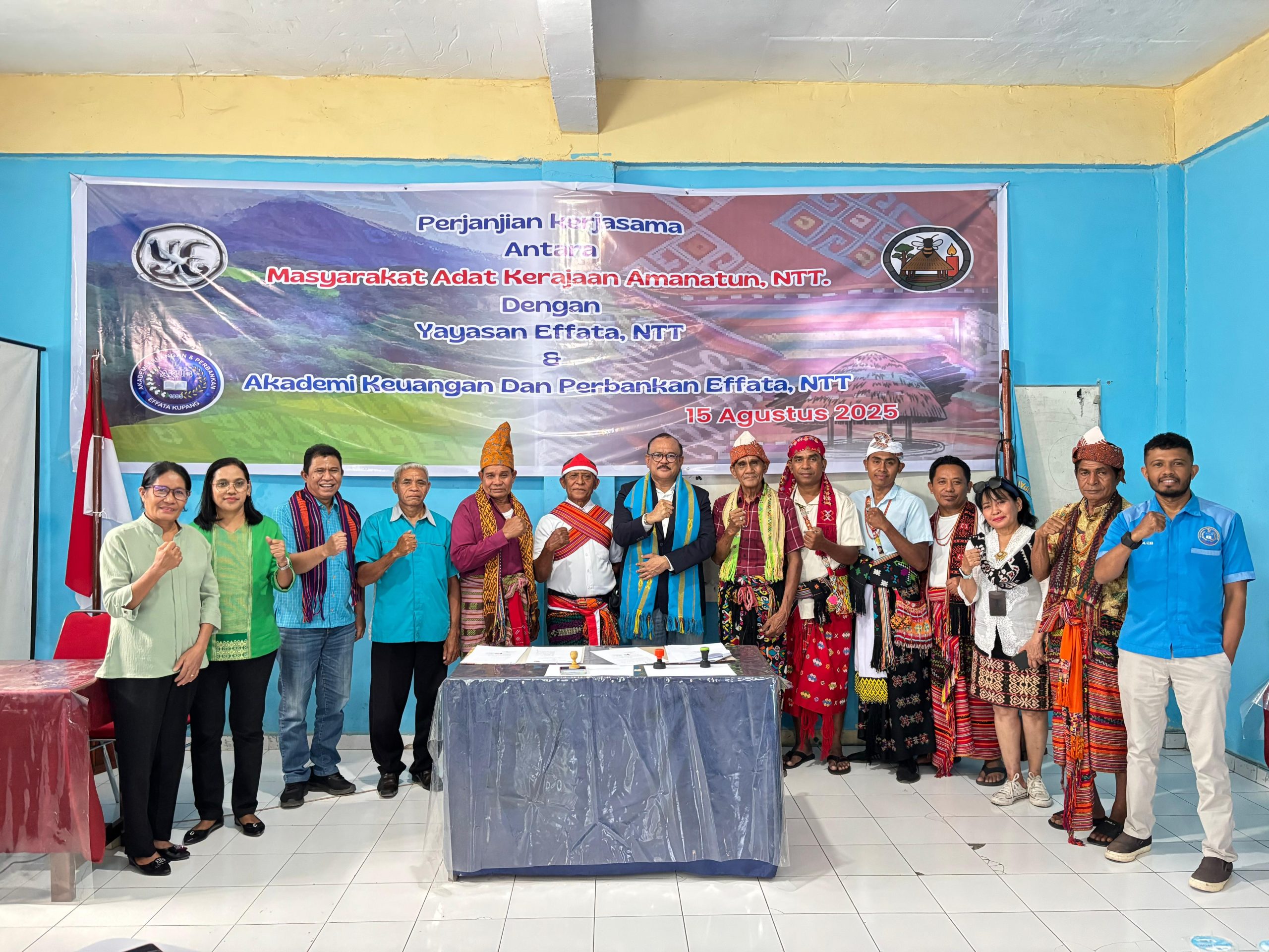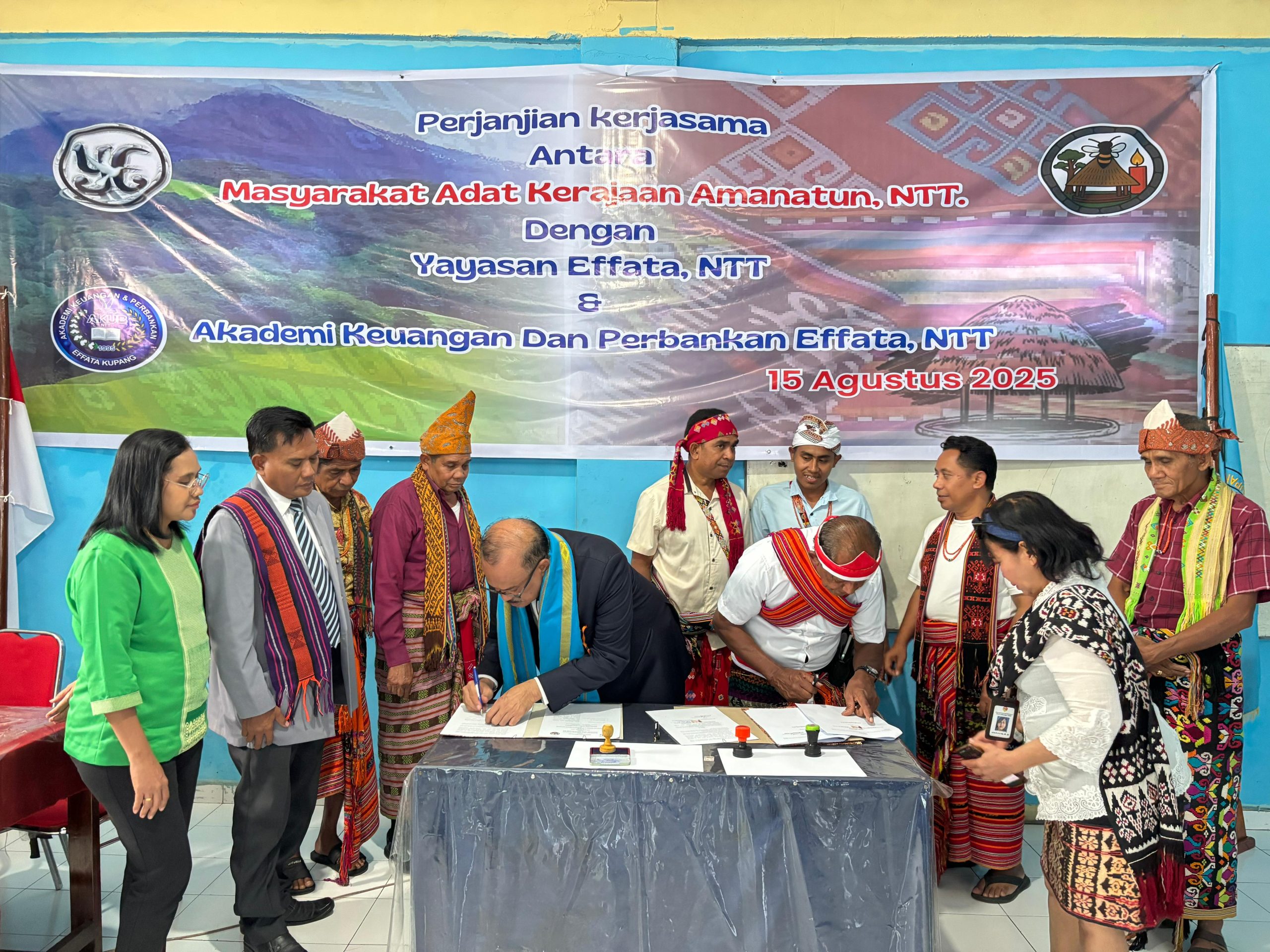 NTT AKTUAL. KUPANG. Sebagai upaya memperkuat kualitas Sumber Daya Manusia (SDM) dan mengembangkan perekonomian masyarakat adat, Yayasan Effata NTT dan Akademi Keuangan dan Perbankan (AKUB) Effata Kupang menandatangani Memorandum of Understanding (MoU) dan Perjanjian Kerja Sama (PKS) bersama Masyarakat Adat Kerajaan Amanatun (MAKANA), bertempat di Aula Kampus AKUB Effata Kupang, Jumat (15/Agustus/2025).