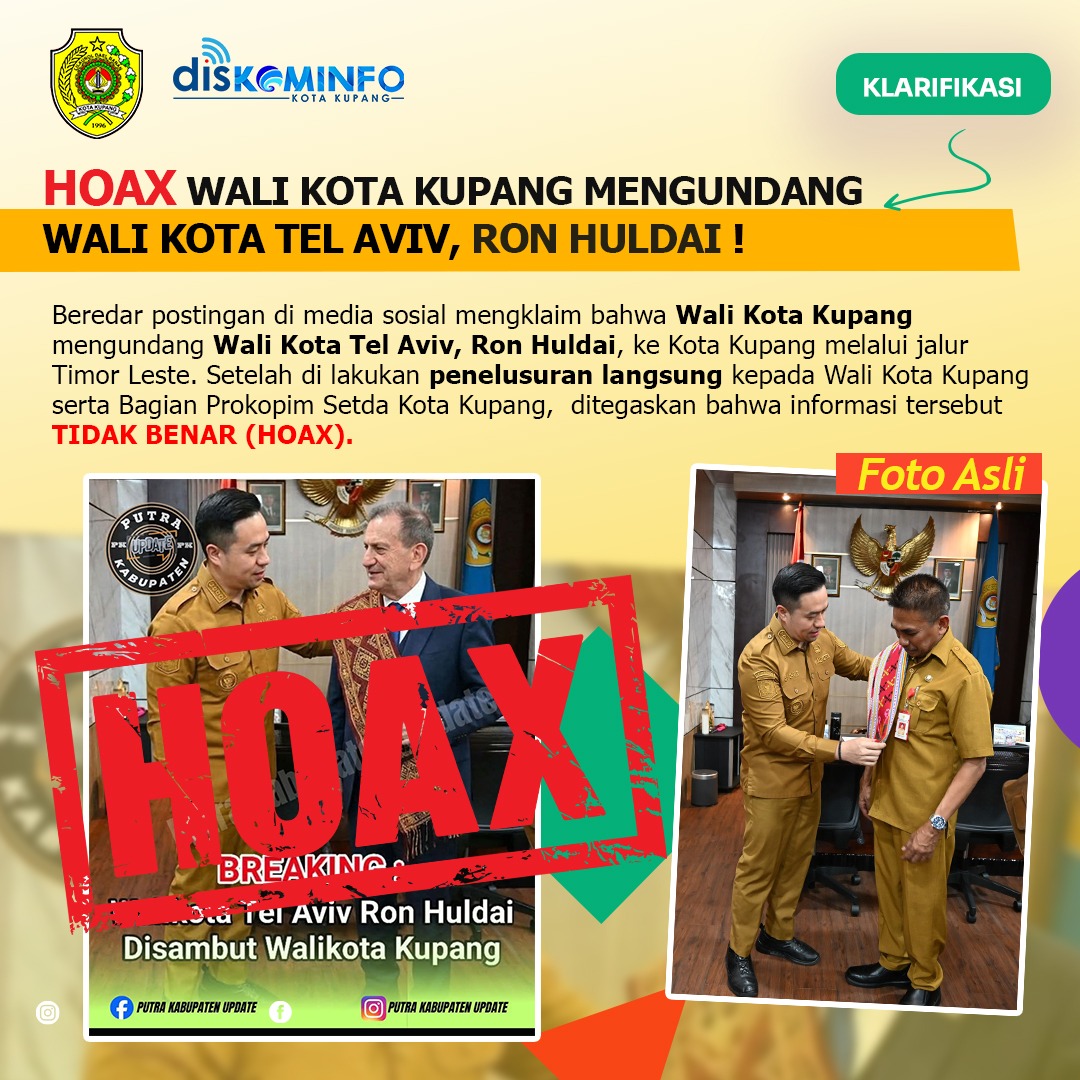 NTT AKTUAL. KOTA KUPANG. Beredar postingan di media sosial TikTok, Facebook, dan Instagram yang mengklaim bahwa Wali Kota Kupang telah mengundang Wali Kota Tel Aviv, Ron Huldai, ke Kota Kupang melalui jalur Timor Leste agar Kupang menjadi kota maju.