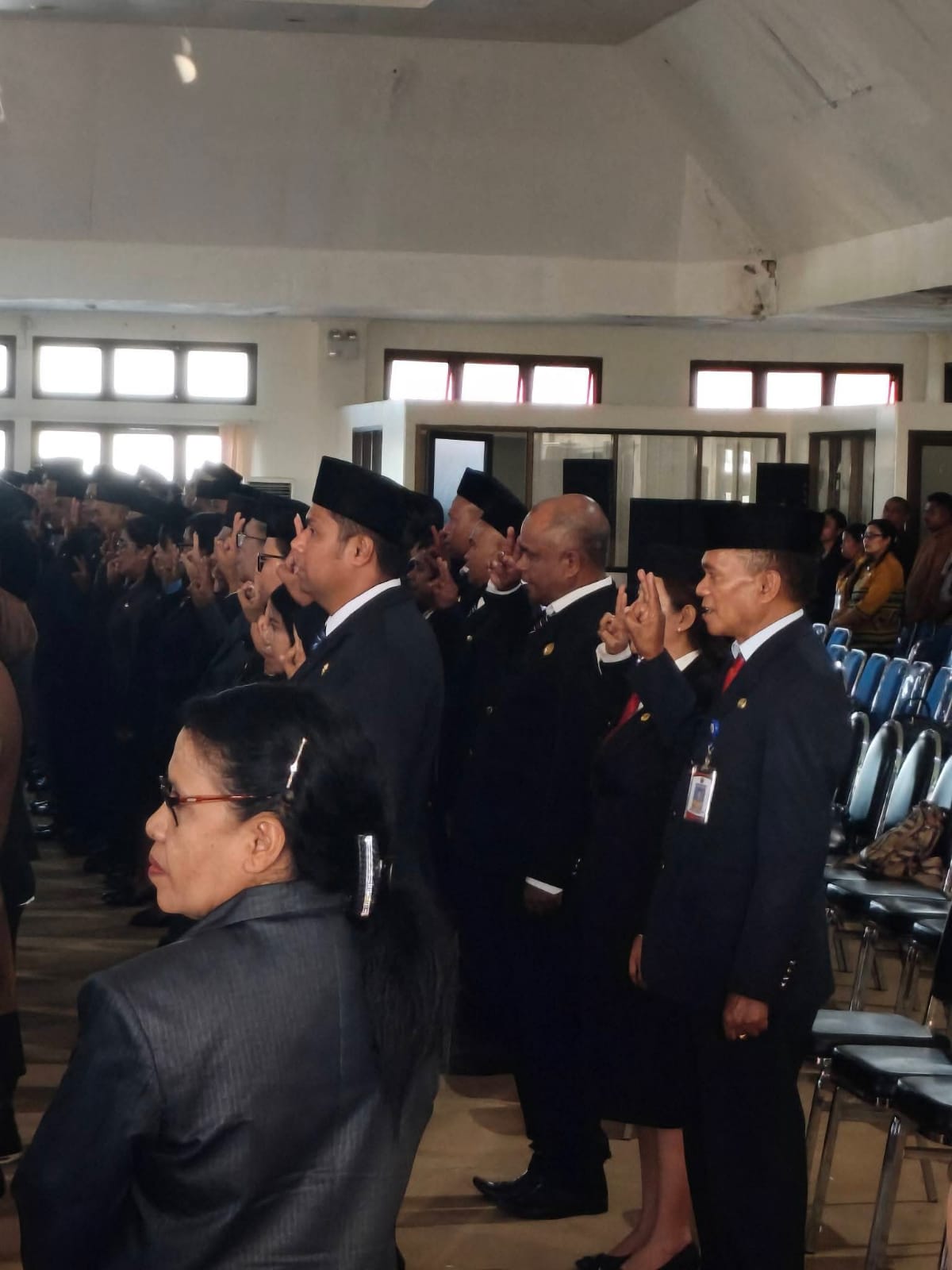 Mutasi dan rotasi jabatan ini dilakukan melalui upacara pengambilan sumpah/janji jabatan dan pelantikan yang dipimpin oleh Bupati Timor Tengah Selatan, Eduard Markus Lioe didampingi Wakil Bupati, Johny Army Konay, dan Sekretaris Daerah, Seperius E. Sipa bertempat di Aula Mutis Kantor Bupati TTS, Kamis (16/April/2026) sore.